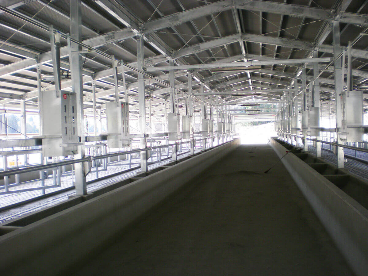 自動給飼システム化により、時間短縮ができ、ゆとりの管理で収益の増大